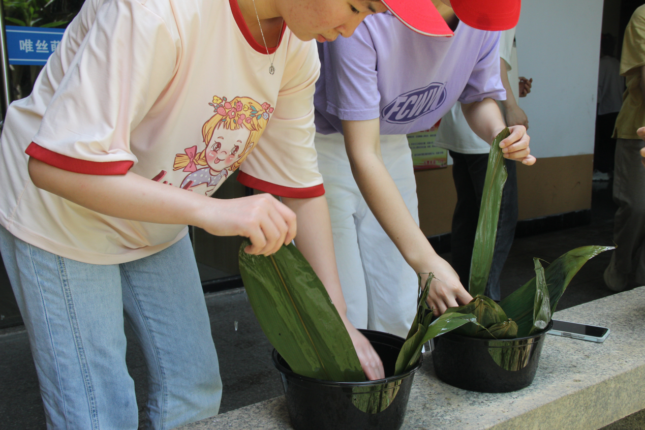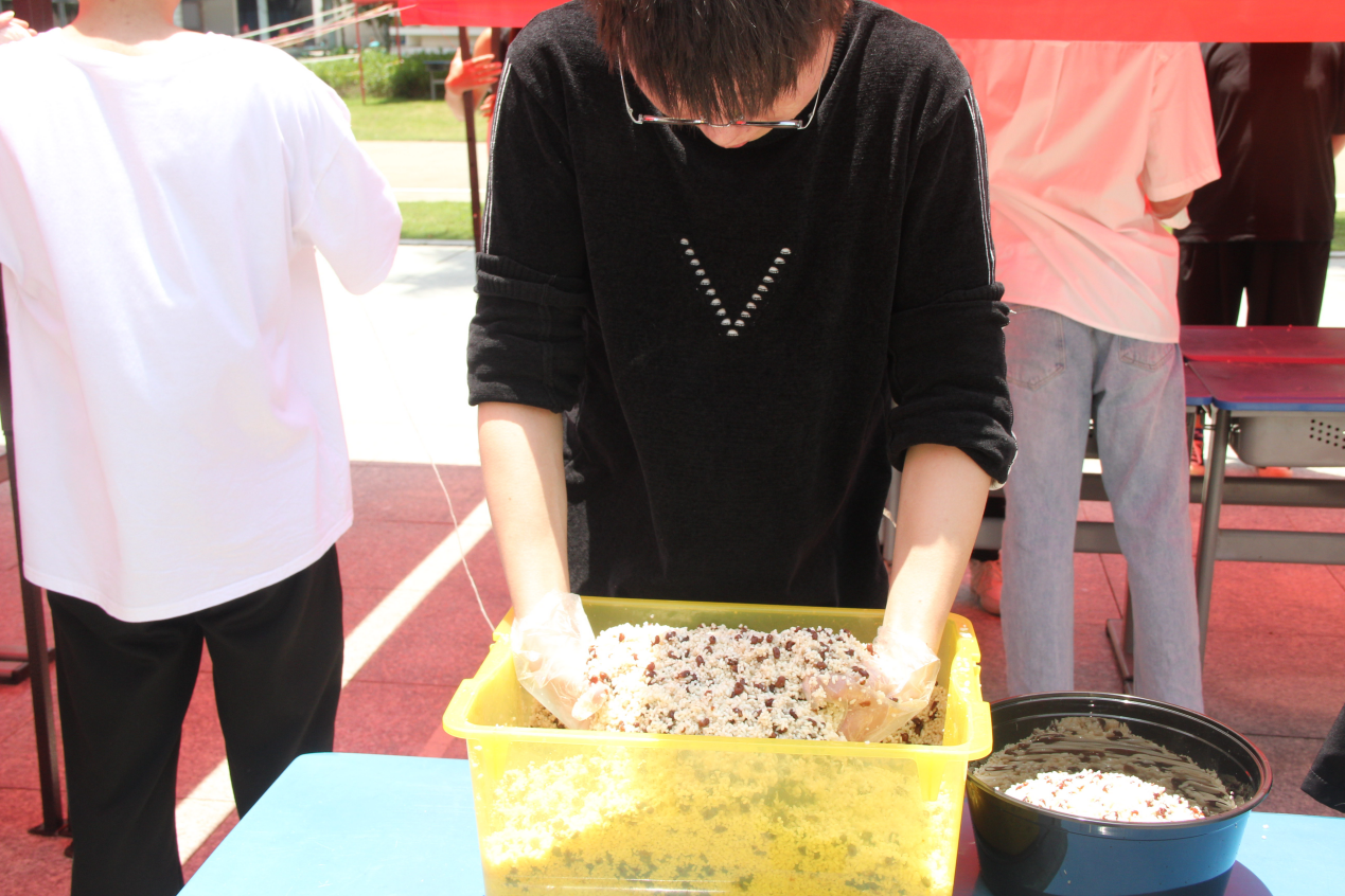 现场有同学表示,虽然今年没办法回家过端午,但是能在学校里第一次动手包粽子,感受浓厚的端午氛围,很有意义。