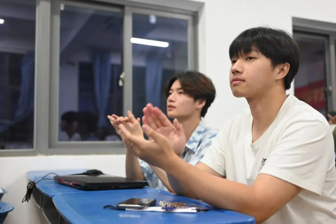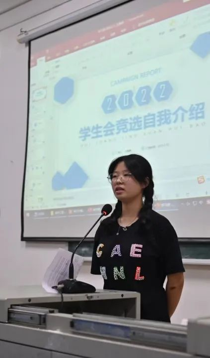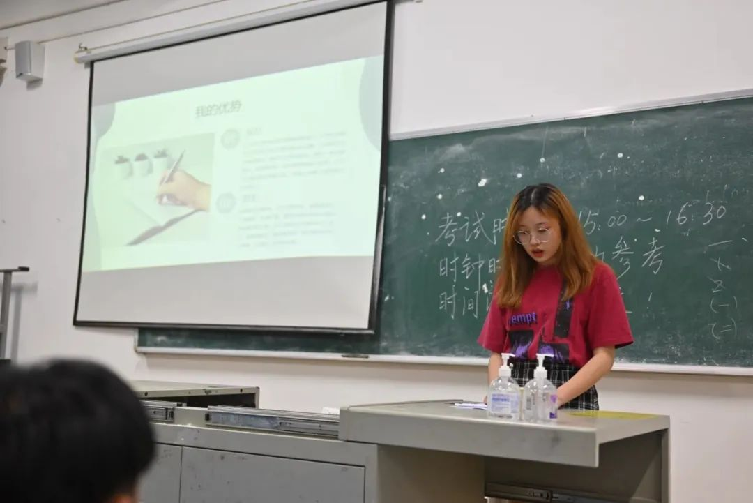 竞选大会准时开始,现场评委有老师以及2020级学生会全体负责人,竞选的同学们依次上台演讲。