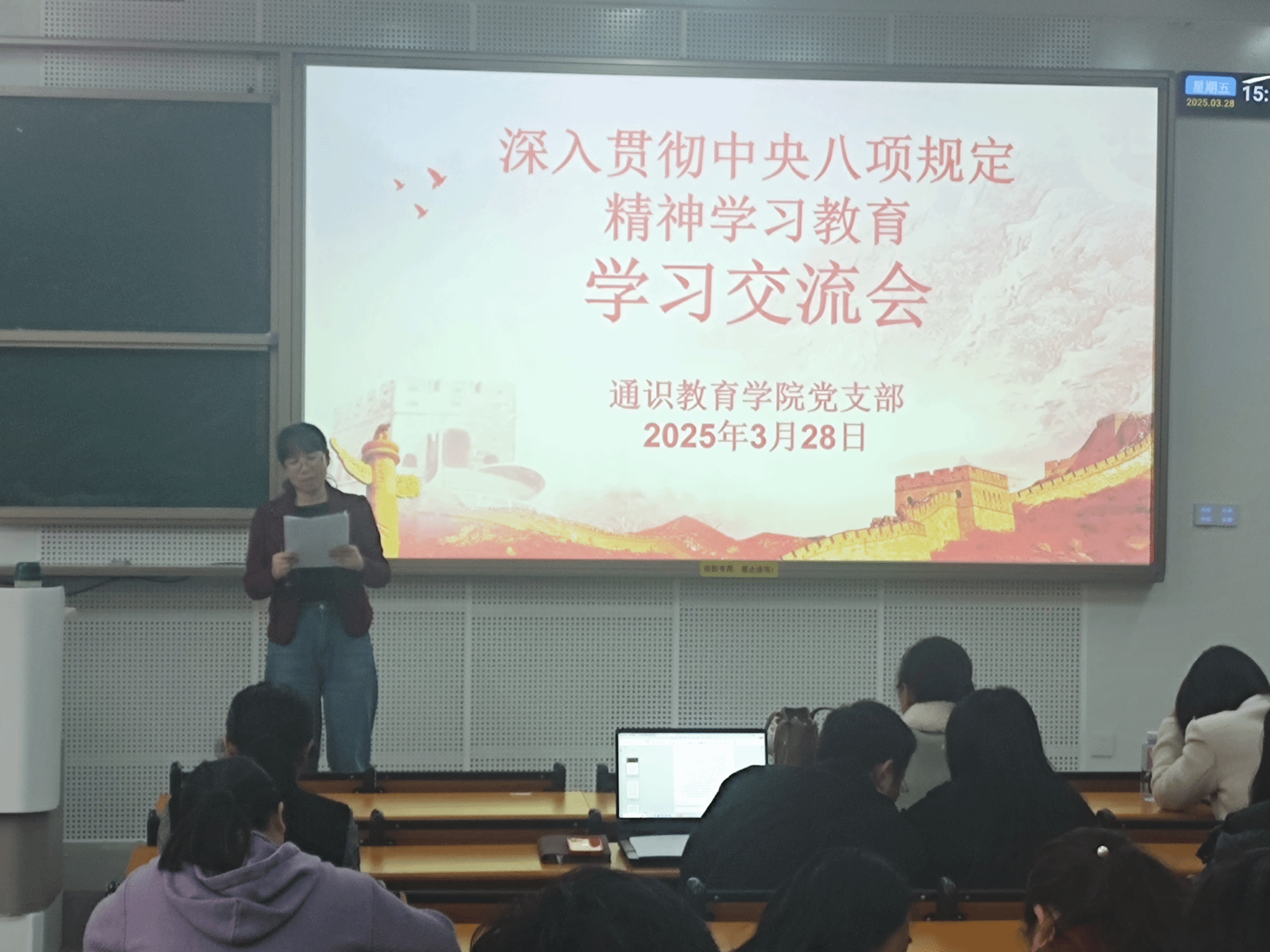 3月28日下午,通识教育学院党支部在新教204开展深入贯彻中央八项规定精神学习教育动员部署会,并展开讨论交流。